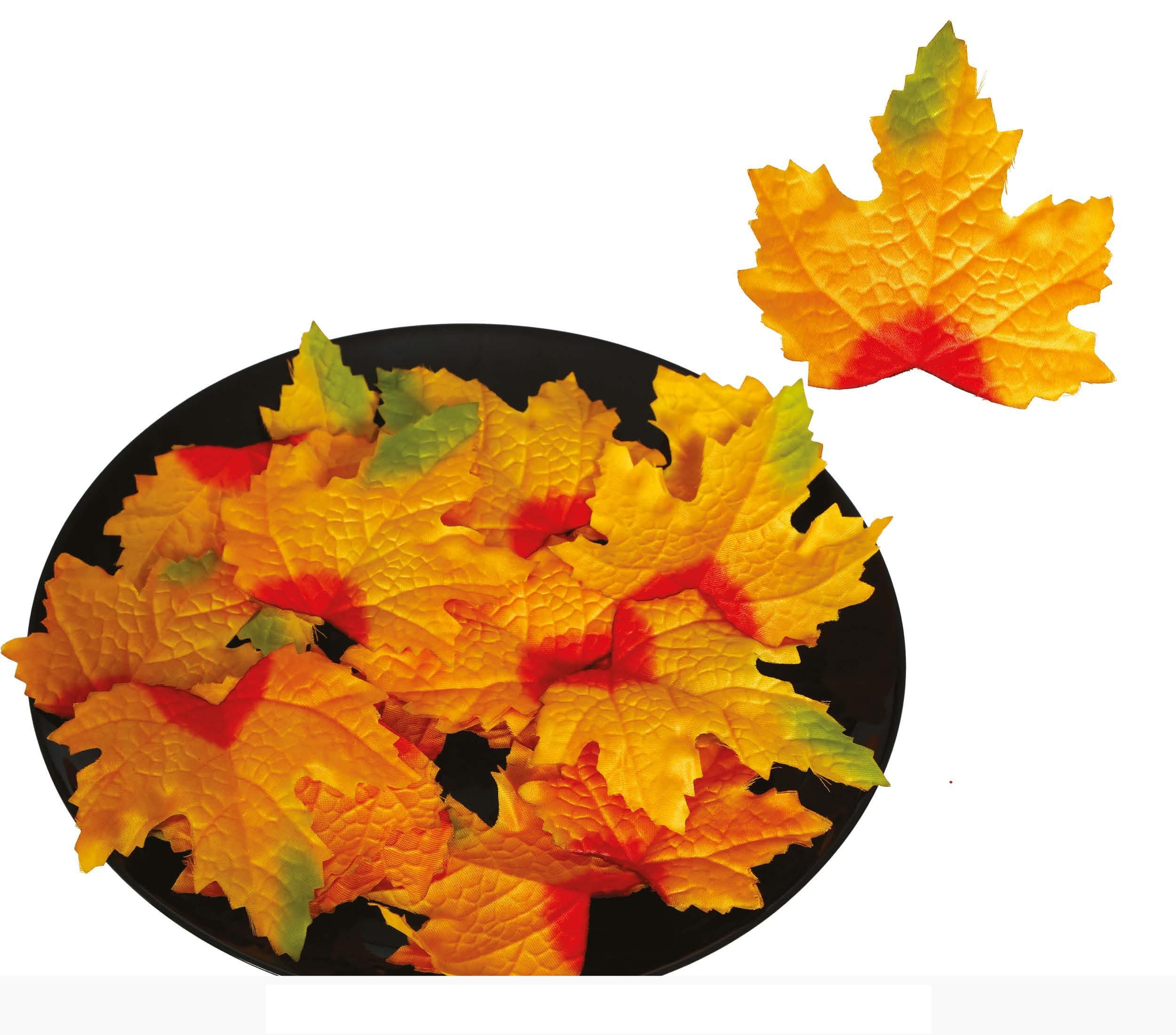 C24973 – Saco com 24 Folhas Abobora Laranja, feita em plástico, diãmetro entre 9 e 10cm, pack 24un. Artigo de fabrico RPC. Artigo muito utilizado em decoração de festas, principalmente de halloween.