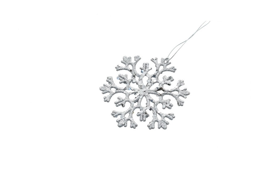 L29113 – Símbolo Neve Prateado Glitter 11cm, para pendurar, comprimento 11cm, pack 1 un. Artigo de fabrico RPC, Itália. É certamente a opção ideal e com muito utilidade na decoração de festas, principalmente em festas de Natal. O Símbolo Neve Prateado Glitter 11cm juntamente com cercas de madeira e ursos, fazem uma decoração bastante alusiva ao natal. Também pode ser utilizado em festas temáticas, nomeadamente: natal, entre outros.