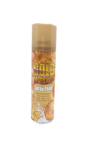 OuroG – Spray de ouro 250 ml, comprimento 5 cm, altura 16 cm. Artigo de fabrico China. Ideal para decorações natalícias. Utilizado em conjunto com outros artigos decorativos de natal, tais como o tapete de neve. É com toda a certeza um artigo indispensável na decoração de natalícia.