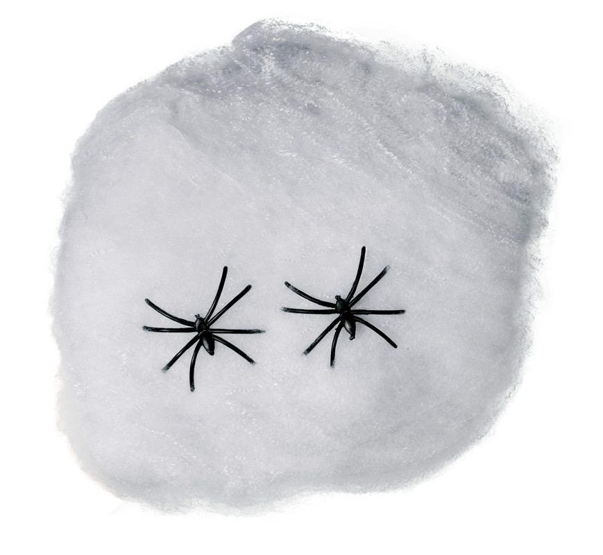 C16878 – Teia Aranha Branca 40g, com 2 aranhas, poliéster, peso 40 g. Artigo de fabrico RPC. Artigo muito utilizado em decoração de festas, principalmente de halloween.