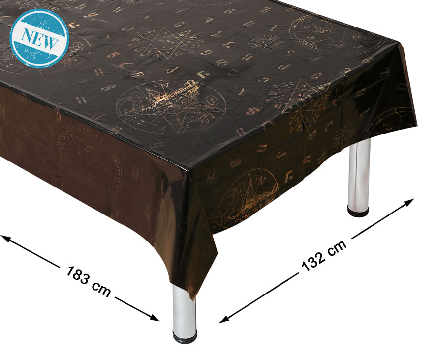 C79837 – Toalha de mesa Ouija , 1 unidade, reutilizável, feito em plástico, na cor preta, com as dimensões: comprimento 183cm e largura 132cm. Artigo de fabrico RPC, Espanha. Ideal para decorações de mesa infantis ou muito utilizado em eventos cujo tema é o oculto. É certamente a opção mais indicada para quem quer dar um toque especial aos eventos e respeitando sempre o meio ambiente. Também pode ser utilizado em festas cujo tema é a magia, tal como o tema a Bruxinha Bibi. Todavia, a Toalha de mesa Ouija é amplamente utilizada em eventos nomeadamente em holístico e do bem-estar.