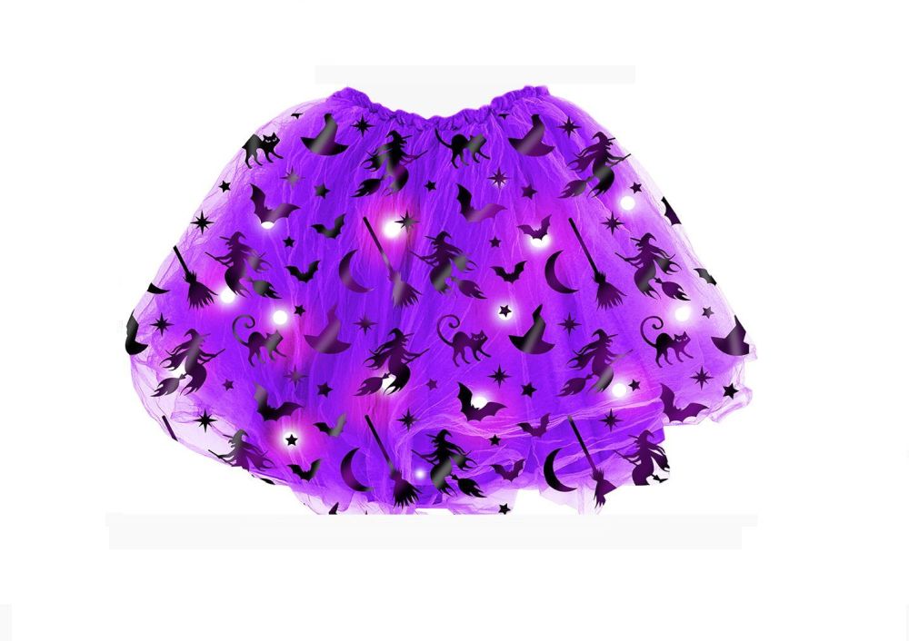 O Tutu Bruxas Infantil 40cm luz é um acessório do fato e é amplamente utilizado em festas de Carnaval ou de Halloween. Também pode ser utilizada de modo a criar cenários, tais como cenários de ensaios fotográficos, peças de teatro, mas é principalmente utilizado para decorar ambientes de morte.