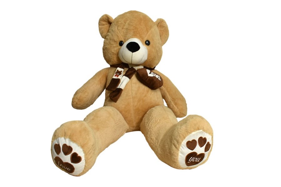 B80005 – Urso Peluche Bege Castanho 100cm, feito em pelucia, dimensões 100x65x8 cm, pack 1un. Artigo de fabrico RPC/EU. É inegavelmente um artigo indispensável na decoração do dia dos namorados ou em festas cujo tema é o primeiro ano.