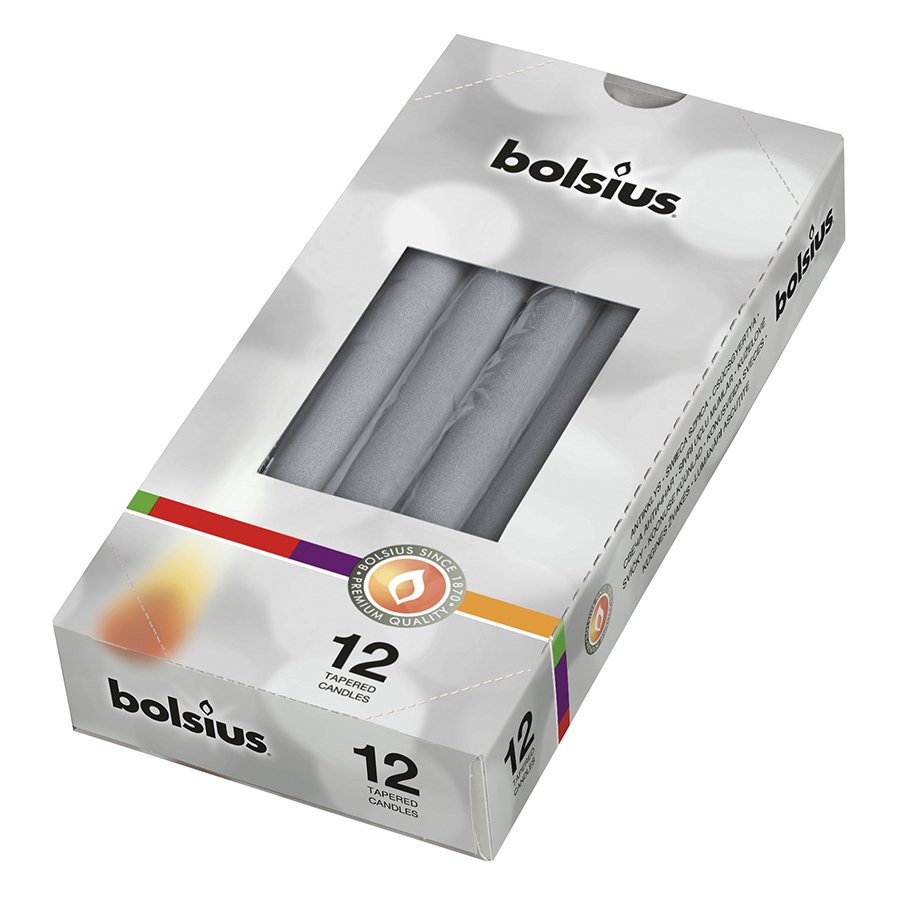 L356881 – Vela castiçal “tappered” Prata 24.5, com as dimensões: altura 24.5 cm, diâmetro 2.4 cm . Artigo de fabrico holandês, da marca Bolsius. Este artigo é vendido à unidade. É inegavelmente um artigo indispensável para a decoração de mesas de natal. Pode ser utilizado em festas cujo tema é o prata, como por exemplo dia dos namorados.