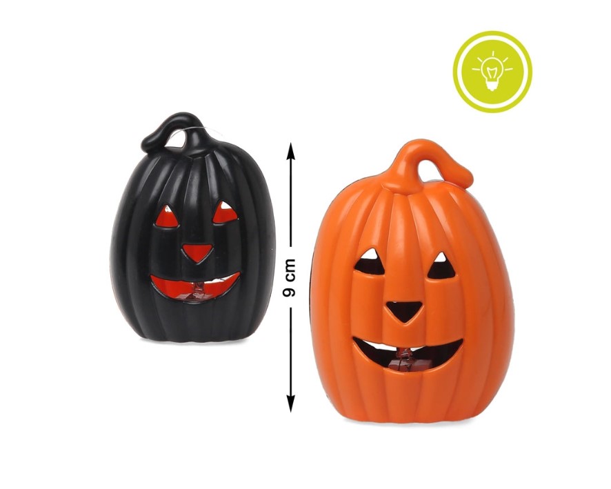 C78885 – Vela elétrica Abobora 9cm, invólucro em plástico, nas cores preto e laranja, com as dimensões: altura 9 cm, diâmetro 7 cm, utiliza 3 pilhas do tipo LR1130. Produto feito na RPC/Espanha. Este artigo é vendido à unidade. É inegavelmente um artigo indispensável para a decoração de mesas de Halloween, festas cujo tema é o preto ou laranja.