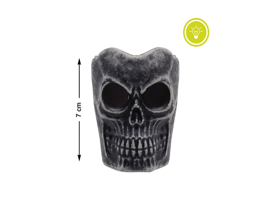 C78901 – Vela elétrica Caveira 7cm, invólucro em plástico, na cor preto, com as dimensões: altura 10 cm, diâmetro 5 cm, utiliza 3 pilhas do tipo LR1130. Produto feito na RPC/Espanha. Este artigo é vendido à unidade. É inegavelmente um artigo indispensável para a decoração de mesas de Halloween, festas cujo tema é o preto ou laranja.
