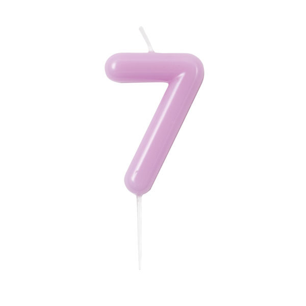 B500.47 – Vela Lilás Glossy número 7, com suporte de espeto branco, 10.5 cm. Artigo de fabrico RPC da marca GIVITALIA .Artigo essencial no bolo de aniversário. Juntamente com outros artigos na loja, tais como: copos, pratos, toalhas e muitos outros. Também pode ser utilizado em festas temáticas, como por exemplo: minnie, princesas, frozen, entre outras.
