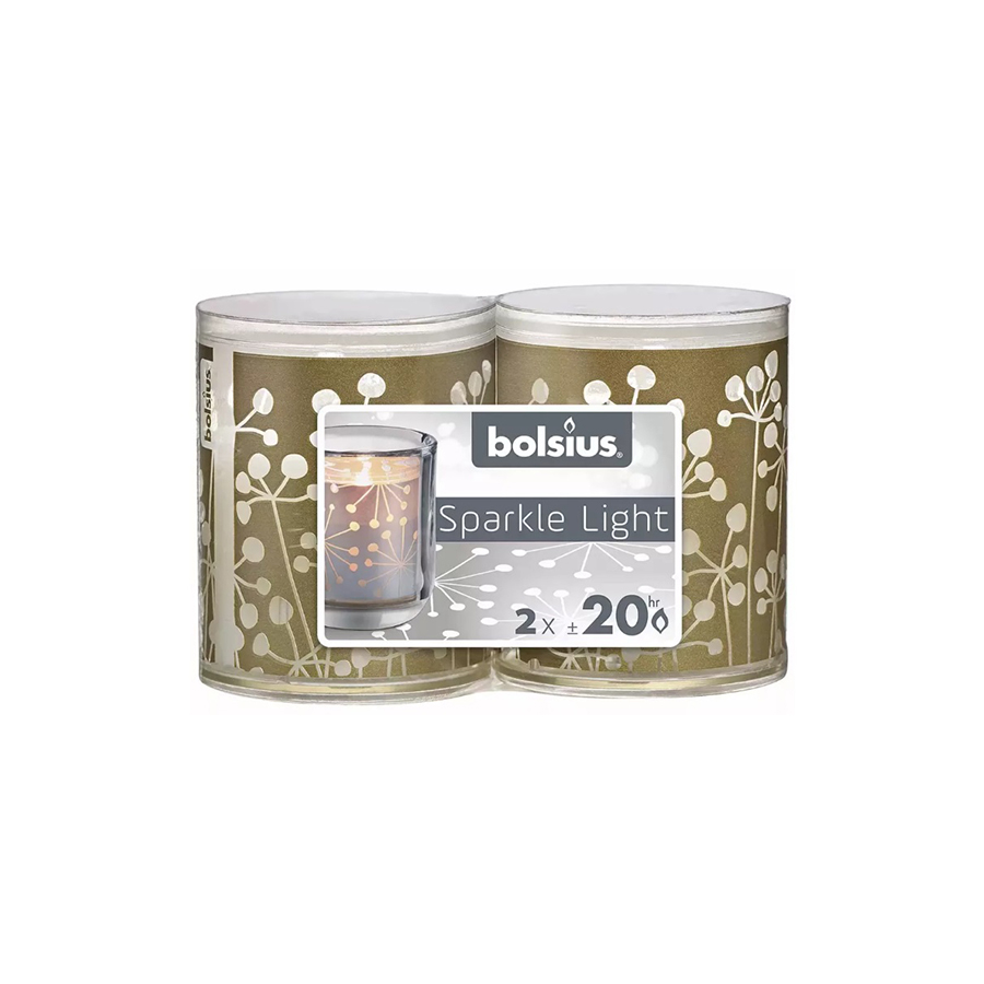 L90581 – Vela Sparkle copos “Crystal” na cor Branca, fornecida em copo de plástico na cor vermelho, modelo Ribbon, com as dimensões: altura 6.5 cm, diâmetro 5.0 cm. Duração da chama: 20h. Artigo de fabrico holandês, da marca Bolsius. Este artigo é vendido em conjunto de 2 unidades. Por outro lado pode ser utilizado em conjunto com o castiçal em vidro com base em juta. É inegavelmente um artigo indispensável para a decoração de mesas de natal, festas cujo tema é o vermelho ou dia dos namorados.