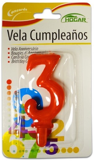 B13A01913 – Vela Vermelha mágica número 3, com suporte de espeto plástico vermelho, 6 cm cm, pack 1 un. Artigo de fabrico RPC. Artigo essencial no bolo de aniversário. Juntamente com outros artigos na loja, tais como: copos, pratos, guardanapos, toalhas e muitos outros. Também pode ser utilizado em festas temáticas, como por exemplo: princesas, minnie, lol, frozen, entre muitas outras.