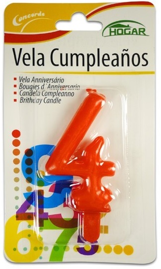 B13A01914 – Vela Vermelha mágica número 4, com suporte de espeto plástico vermelho, 6 cm cm, pack 1 un. Artigo de fabrico RPC. Artigo essencial no bolo de aniversário. Juntamente com outros artigos na loja, tais como: copos, pratos, guardanapos, toalhas e muitos outros. Também pode ser utilizado em festas temáticas, como por exemplo: princesas, minnie, lol, frozen, entre muitas outras.