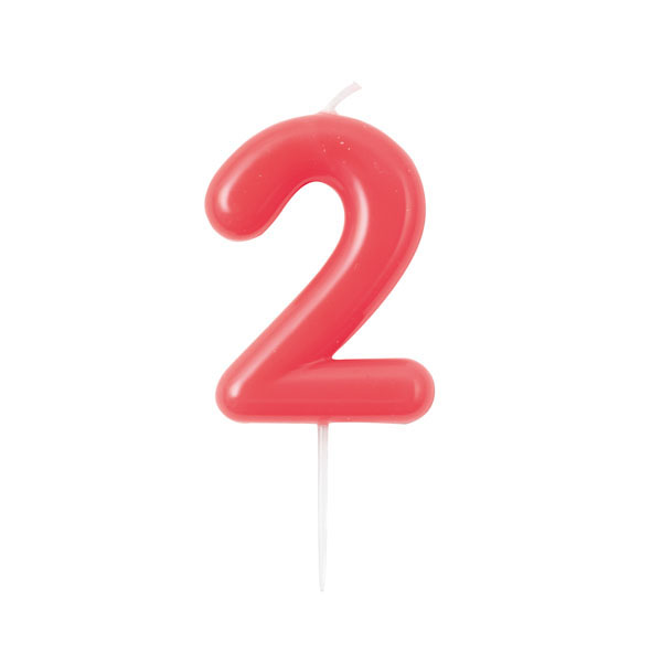 B500.82 – Vela Vermelho Glossy número 2, com suporte de espeto branco, 10.5 cm. Artigo de fabrico RPC da marca GIVITALIA .Artigo essencial no bolo de aniversário. Juntamente com outros artigos na loja, tais como: copos, pratos, toalhas e muitos outros. Também pode ser utilizado em festas temáticas, como por exemplo: minnie, princesas, frozen, entre outras.