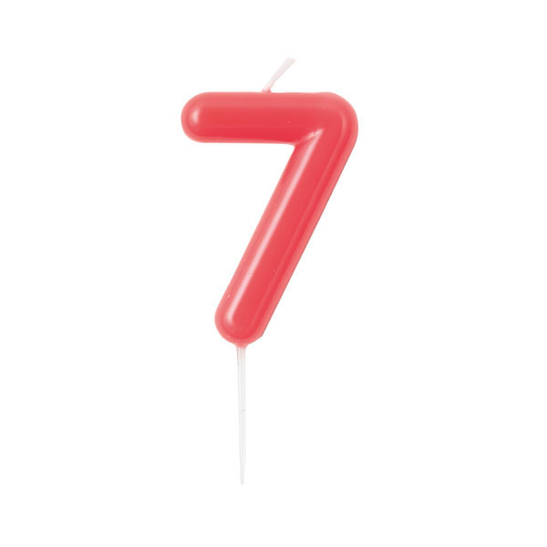 B500.87 – Vela Vermelho Glossy número 7, com suporte de espeto branco, 10.5 cm. Artigo de fabrico RPC da marca GIVITALIA .Artigo essencial no bolo de aniversário. Juntamente com outros artigos na loja, tais como: copos, pratos, toalhas e muitos outros. Também pode ser utilizado em festas temáticas, como por exemplo: minnie, princesas, frozen, entre outras.